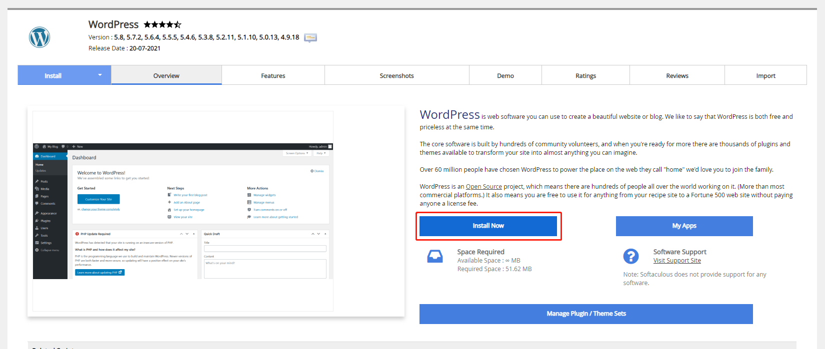 直接点“Install Now”,就可以啦,之后与其他安装的方式无异,需要的 MySQL 去信息页查看即可。