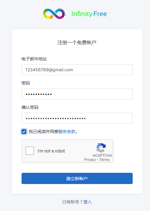 首先注册一个infinityfree,点我直达,没有过多的注册要求,门槛低。
