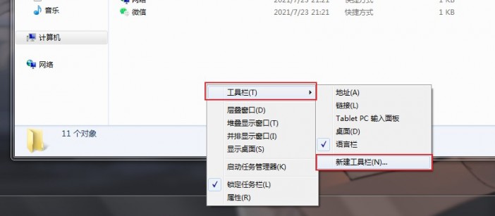 取消任务栏锁定后,拖动刚刚添加【桌面】至合适位置,如果有输入法,右键输入法图标,选择还原语言栏