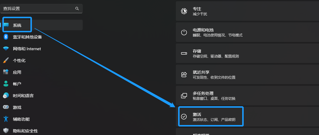 系统设置中的激活,点击更改产品密钥,弹窗输入WMN7B-Y7TKF-Y49QB-TMQ8T-GMT6T